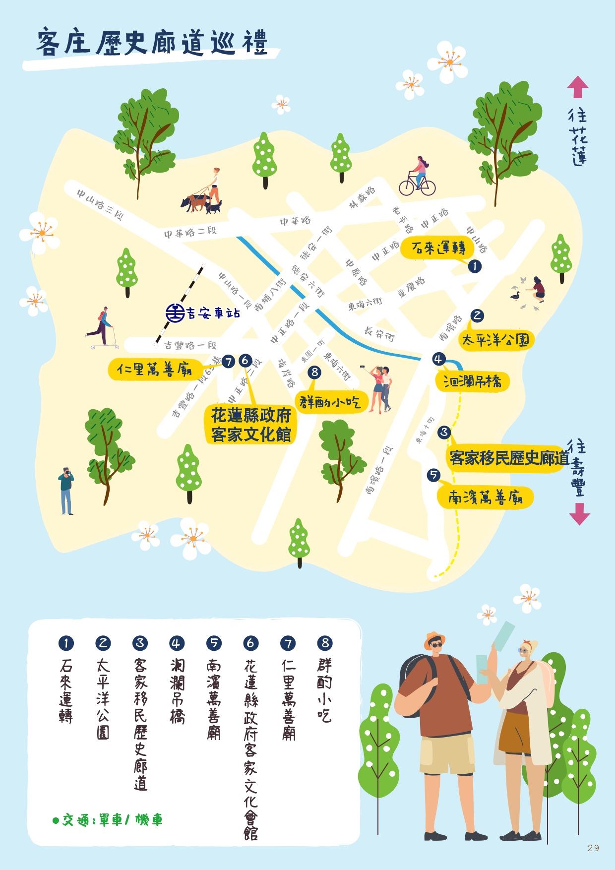 花蓮市與吉安鄉在生活、觀光上密不可分,許多景點都具有獨特的歷史價值,昔日南濱舊港道客家聚落裡的伯公廟、三山國王廟、神農信仰都是值得參觀的景點,一同親臨現場,緬懷先民千辛萬苦抵達花蓮開墾的辛勞。