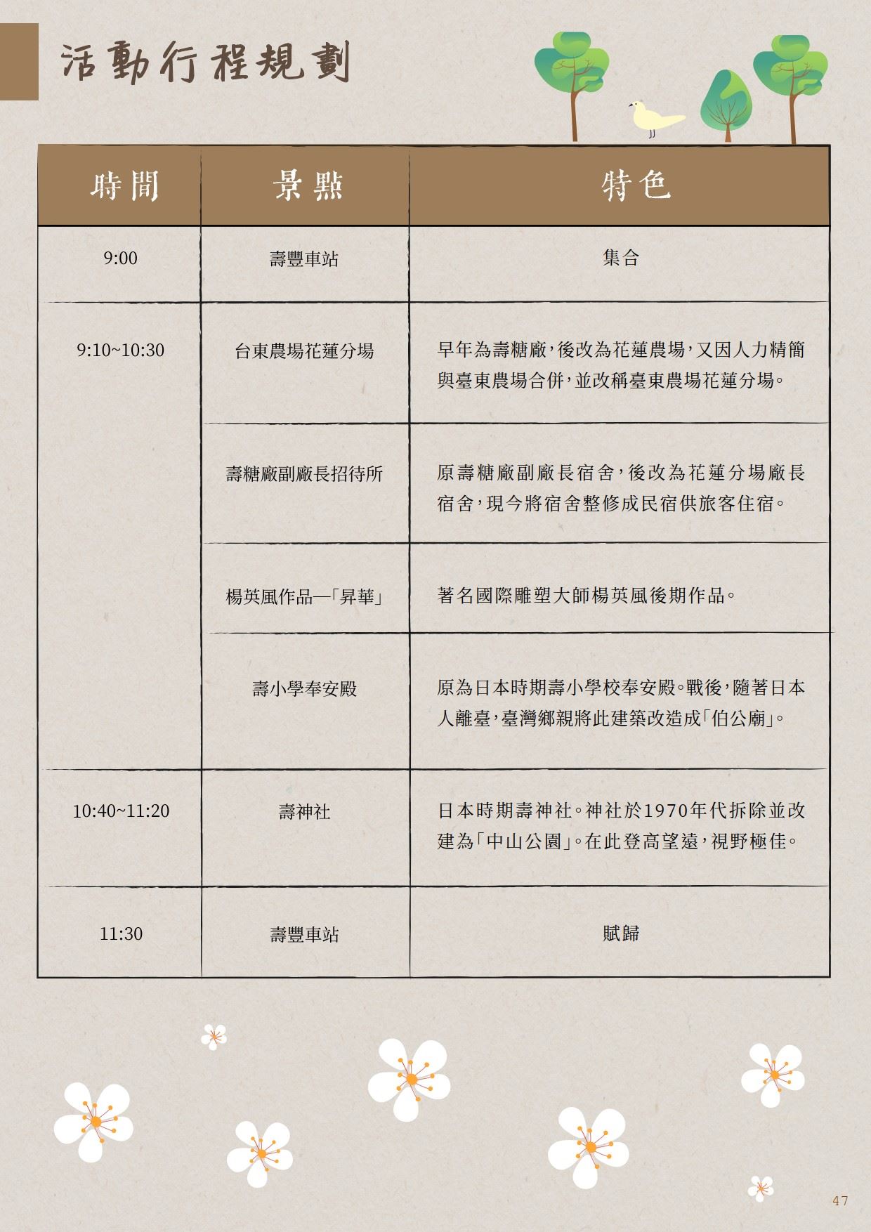 走訪壽豐小鎮,探索當地客家阿公婆在此開發的故事,透過輕旅行的方式遊壽豐,探訪先民開發的足跡,了解不同年代的辛酸血淚史。