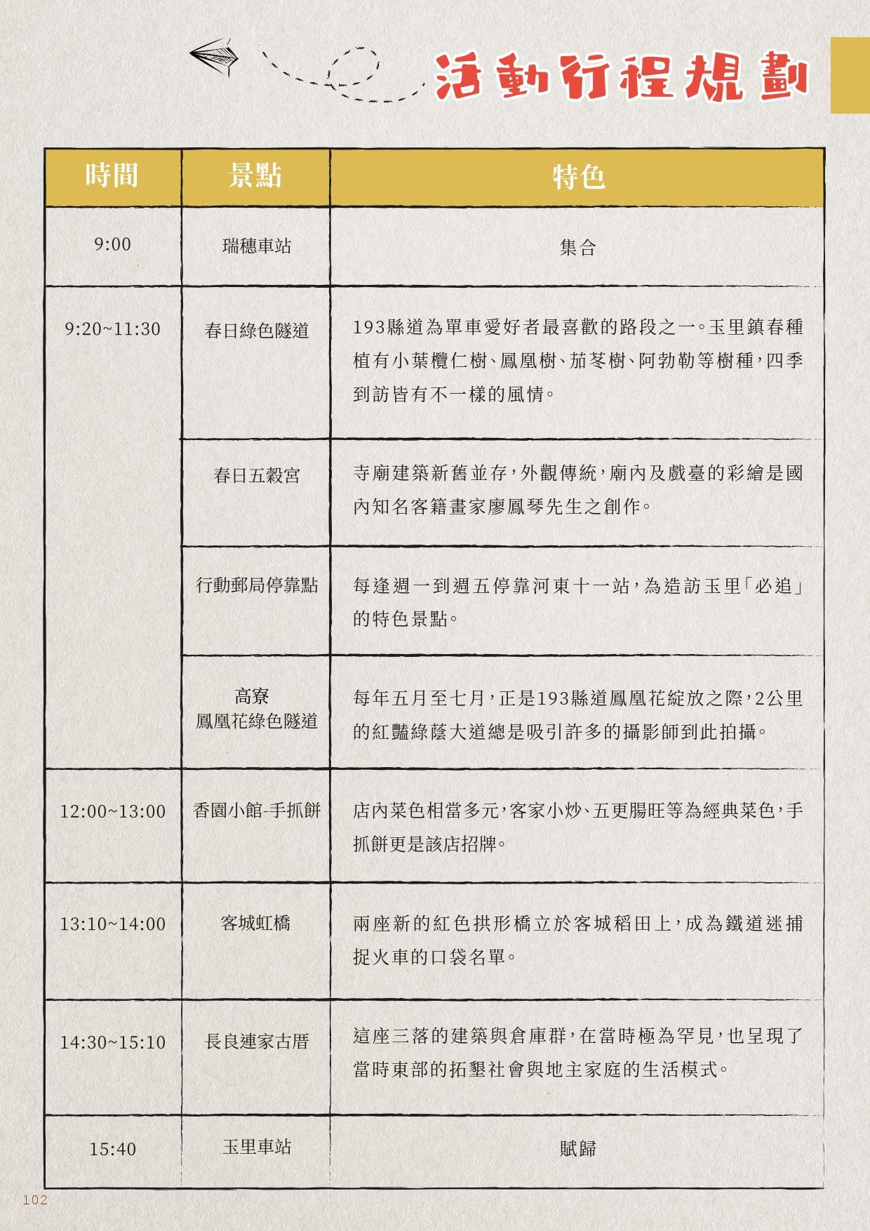 每個部落都有專屬停靠的地方,不能遲到也不能提早離開,當地的阿公婆看準時間,放下手邊的工作來報到,存款、提款或是要寄東西都可以在此搞定,但存款及提款必須要在行動郵局開戶才能辦理。隨著老齡化的嚴重,行動郵局有時也會順便幫忙當地阿公婆跑腿,到街上的藥局領藥、到大賣場買生活用品等。另外,在特定花季時期抵達193縣道,可見另類風情的繽紛綠色隧道:春日段種植綿延數百公尺長的小葉欖仁樹,高寮地區種植鳳凰花,鐵份地區則種植黃色的阿勃勒。此外,午後海岸山脈的雲瀑亦是193縣道獨有的景色。